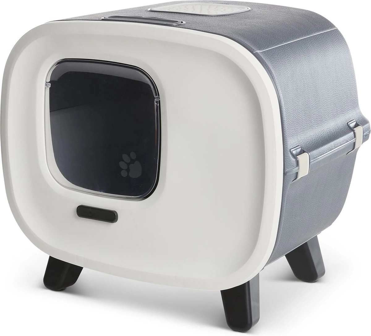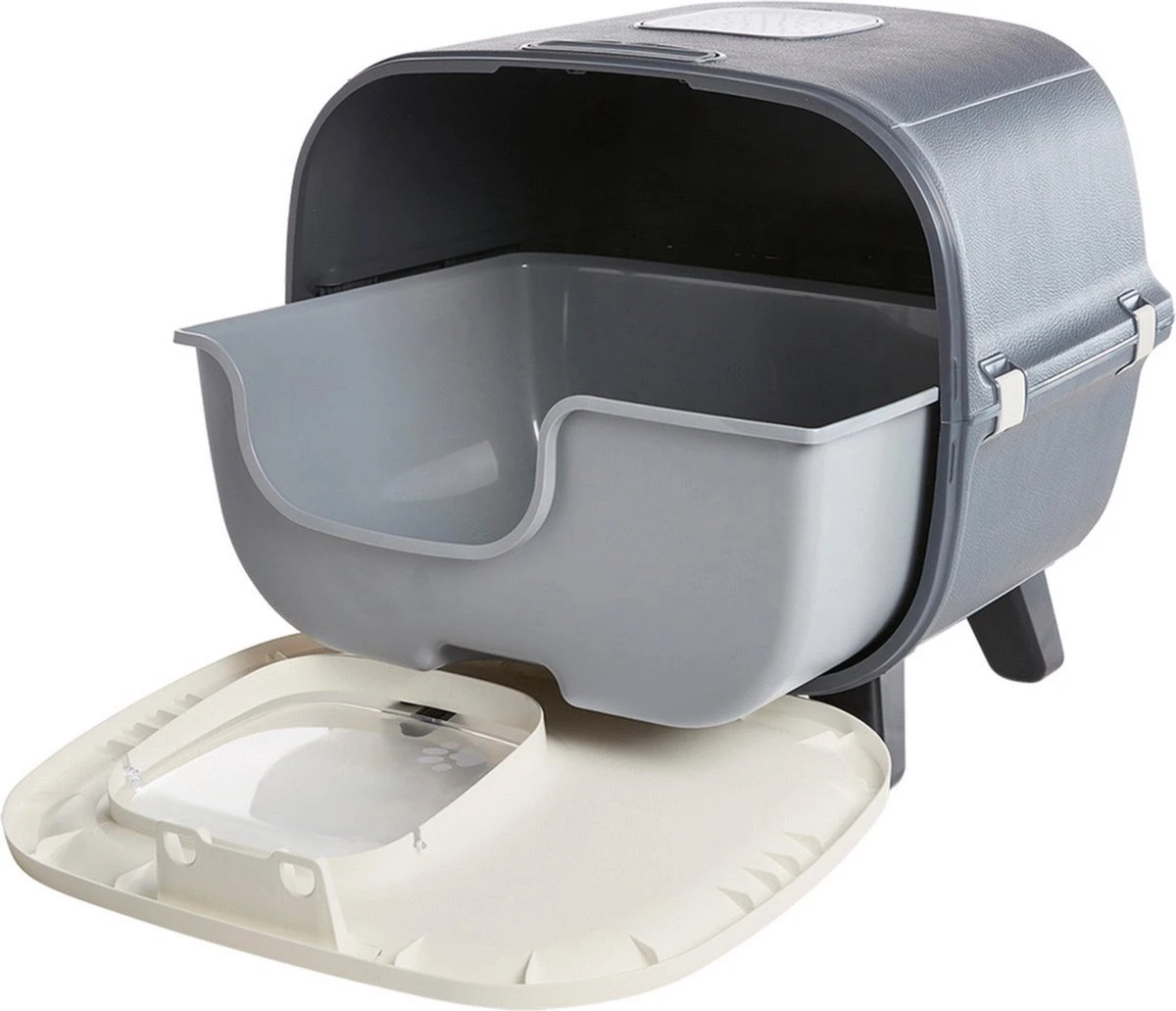 Savic Kattenbak Mira Deluxe Antraciet 56 x 45 x 50,5 cmSavic Kattenbak Mira Deluxe Antraciet 56 x 45 x 50,5 cm is een moderne, bijzondere kattenbak op pootjes, een aanwinst voor jouw interieur die ook nog eens heel praktisch in gebruik is. Deze gesloten kattenbak verdient een prominente plek in jouw huis! Deze bak bestaat uit een kattenbakhuis in een moderne vorm met daarin een losse bak, die eenvoudig in en uit het huis te schuiven is nadat het voorpaneel geopend is. De hoge rand van de interne bak zorgt ervoor dat er geen grit, urine en ontlasting overheen gegooid kunnen worden. Voor nog meer hygiëne is Mira voorzien van een high-performance koolfilter, dat wel vijf keer meer luchtjes absorbeert dan reguliere filters in normale bakken. Voor een heerlijk fris ruikende omgeving! Tot slot is deze kattenbak voorzien van anti-slip voetjes, zodat de bak niet verschuift bij het in- en uitstappen. Een aanwinst voor kat en baas! – Moderne, stijlvolle katte