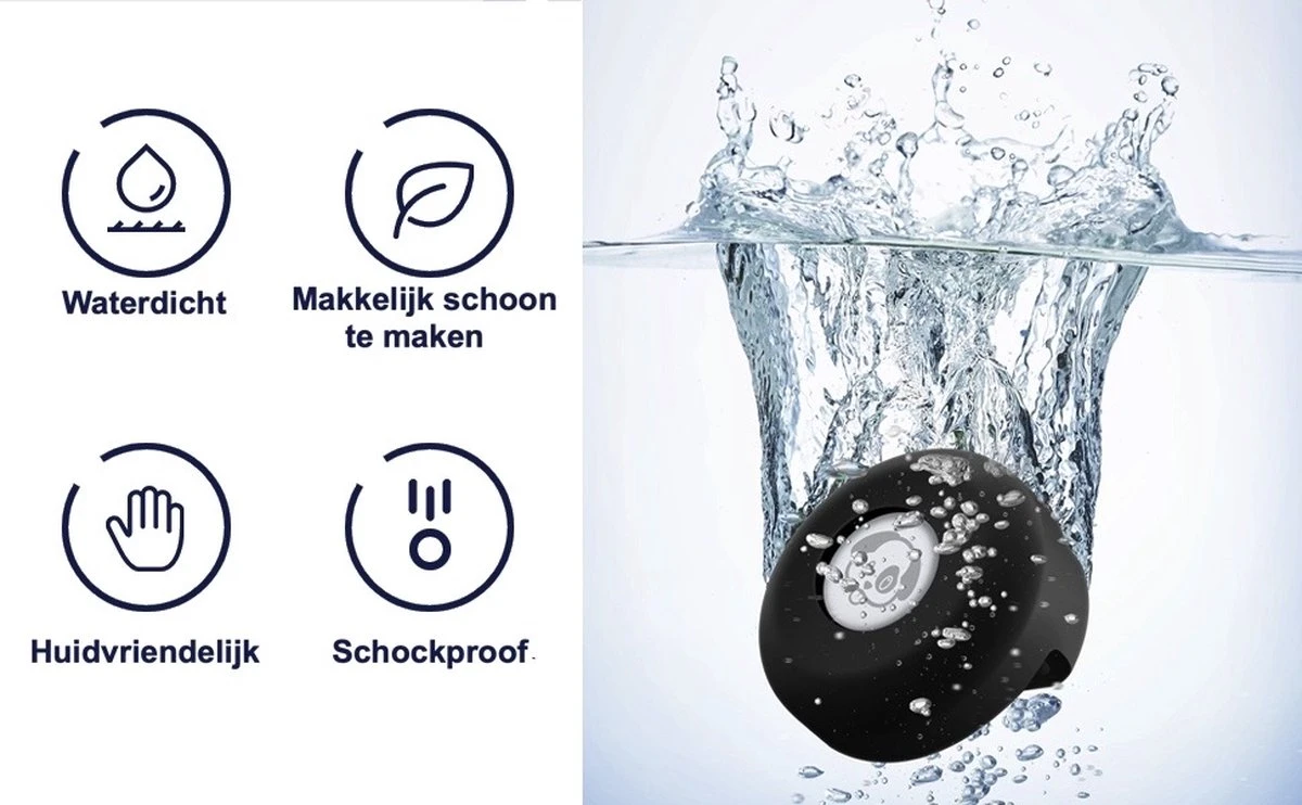 De AirTag zelf is 100% waterdicht. Met dit hoesje eromheen kan hij ook nog tegen een stootje. De hoes zit er super strak omheen dus de AirTag kan er niet uitvallen. Zelfs de meest ruige, speelse viervoeter die er van houdt om regelmatig te zwemmen en door de modder te rollen kunnen deze AirTag hoes er niet af krijgen. Zo kan jij zonder zorgen onze AirTag houder gebruiken!