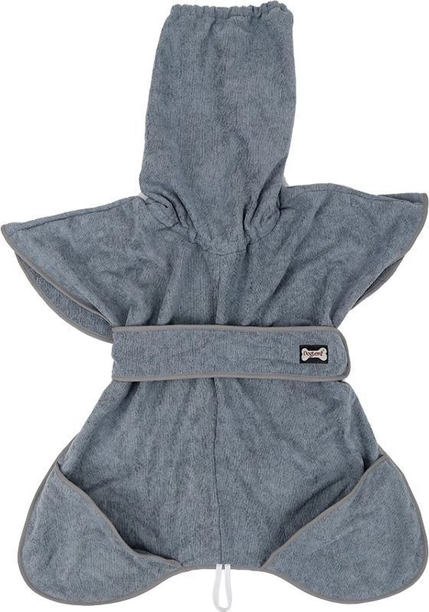 De hondenbadjas is voorzien van een extra brede halsopening en twee verstelbare gespen die zorgen voor een ideaal draagcomfort. Het lange en brede stuk stof bij de buik zorgt voor de juiste pasvorm voor uw hond. De badjas is in diverse maten beschikbaar.