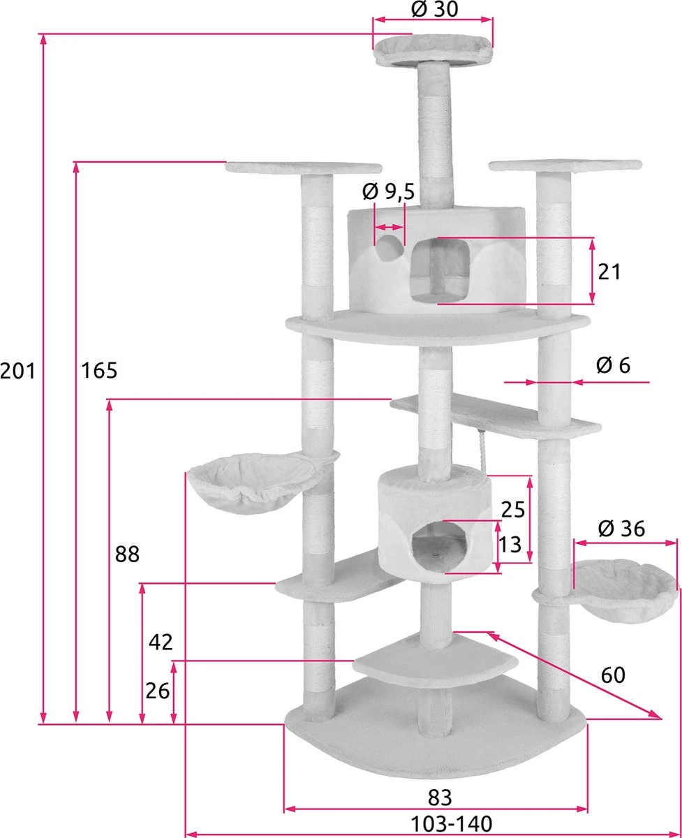 Deze krabpaal laat niets te wensen over voor je viervoeter! Op deze krabpaal hun nagels ideaal scherpen en hun spelvreugde uitleven. De krabpaal bewijst zich ook uitstekend als slaap- en ligplaats. Katten zijn heel nieuwsgierige dieren en houden ervan alles in het oog te houden – daardoor is de krabpaal precies wat je kat nodig heeft.