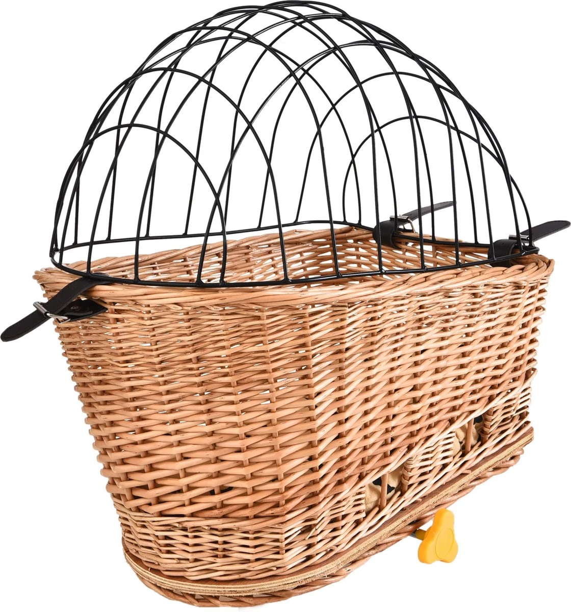 Geniet samen met jouw huisdier van een leuke en veilige uitstap met de fiets dankzij deze Topmast fietsmand. De gevlochten mand is vervaardigd uit kwalitatief riet en heeft een stevige bodemplaat voor een goede stabiliteit. In de mand zit een zacht kussentje voor extra zitcomfort. Dankzij de draadkap kan jouw hond in alle veiligheid meekijken en meegenieten van de fietsrit. Zonder zorgen, veilig en comfortabel onderweg!