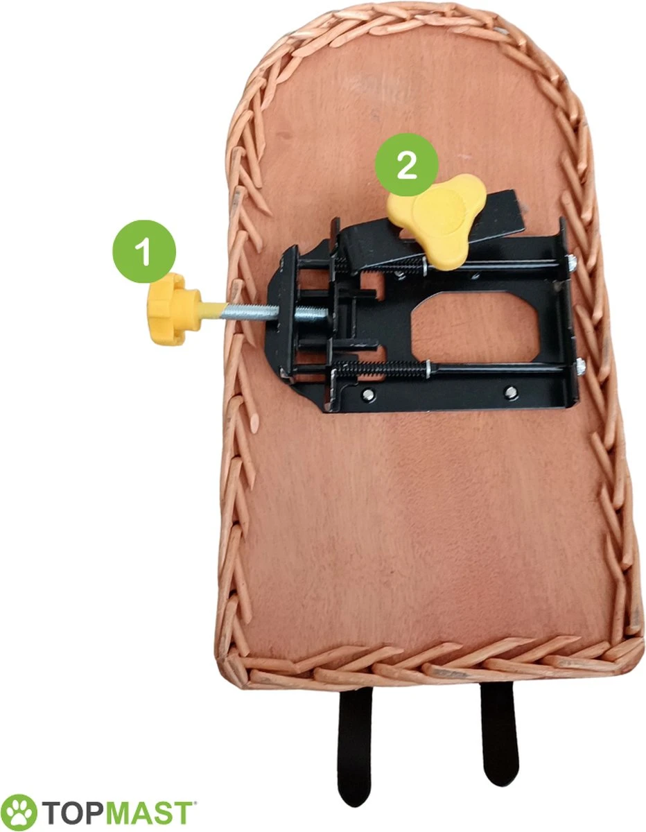 - Stap 1: Plaats de fietsmand op de bagagedrager en draai het schroefdraad (nr. 1) aan.