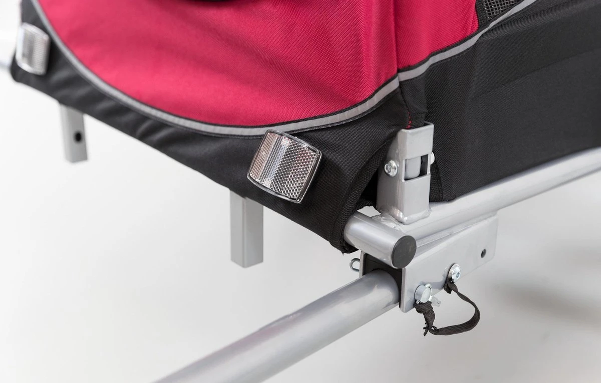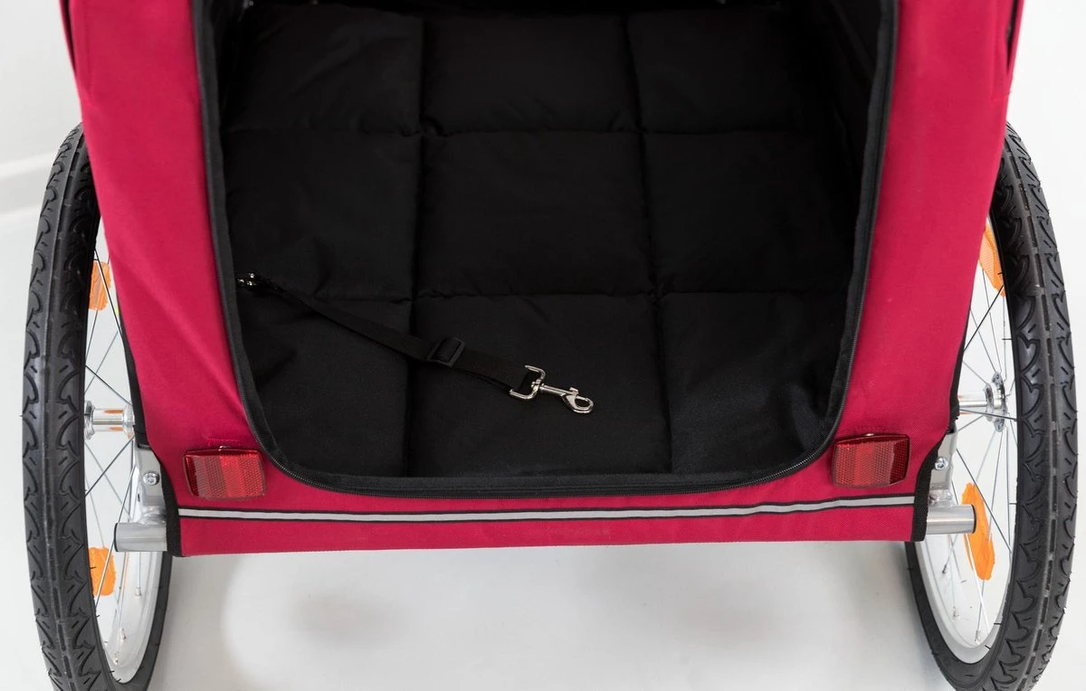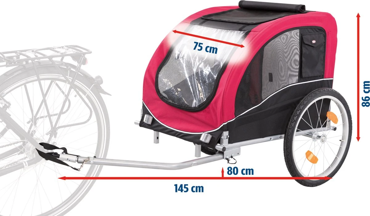 Met deze hondenfietskar van Trixie van 80 x 75 x 86 cm in zwart en rood neemt je je hond overal mee naartoe op reis met de fiets.