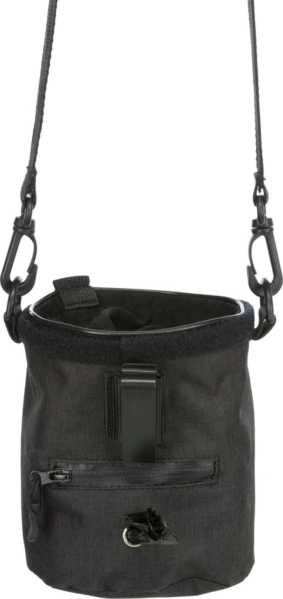 Het Trixie Snackzakje Multi Twist Assorti 17 x 22 cm is een multifunctionele snackzak voor de hond, met regelbare draaisluiting, poepzakjeshouder en karabijnhaak, waterdicht. Dit handige snackzakje is van alle markten thuis! Uiteraard biedt dit handige tasje alle ruimte voor de beloningssnacks die jij op wandeling mee wil nemen voor jouw hond. Ideaal aan dit tasje is de handige twist off-sluiting. Door de stof strakker of losser in elkaar te draaien, reguleer je de toegang tot de inhoud. De sluiting kan geheel gesloten worden indien er even geen snacks gepakt hoeven te worden en beschermt dan ook tegen de regen. Hiernaast is dit handige zakje voorzien van een geïntegreerde poepzakjes-dispenser, zodat je ook jouw poepzakjes altijd bij de hand hebt zonder nog een extra houder mee te hoeven nemen. Aan de karabijnhaak maak je bijvoorbeeld een hondenfluitje of clicker vast, en in de buitenvakjes stop je loses spulletjes die je op de wandeling meeneemt. Met reflecterende buitenvakken die het tasje goed zichtbaar maken! Inclusief traploos verstelbare riem.