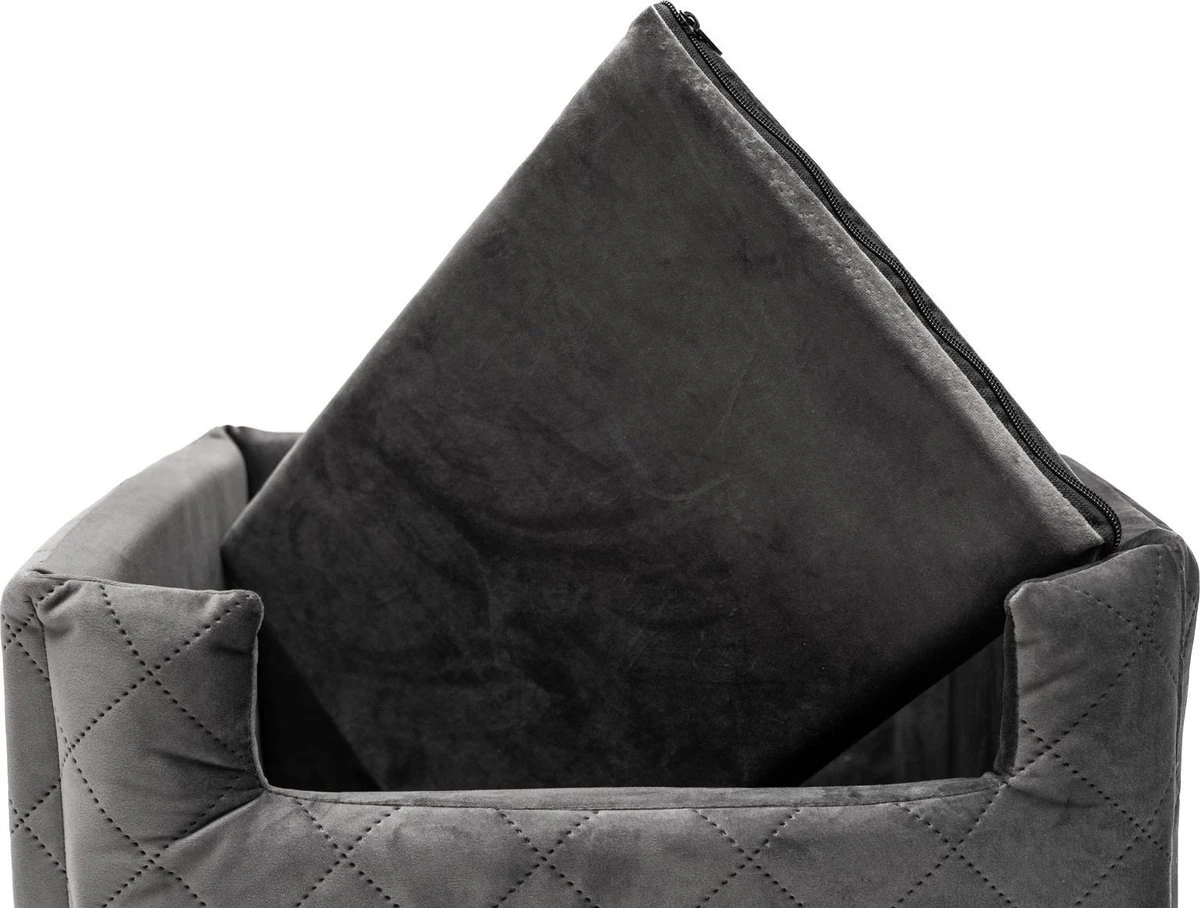 De Velvet Silver honden autostoel met een orthopedisch kussen voor kleine hondenrassen, in een mooie zilveren kleur, zal uw huisdier een gevoel van comfort, stabiliteit en dus veiligheid geven! Thuis of in de open ruimte rond het huis voelt de hond zich niet ongemakkelijk omdat hij zijn territorium goed kent. De situatie is totaal anders wanneer u met de auto reist. Om de onaangenaamheden van de reis zoveel mogelijk weg te nemen, hebben wij een zitplaats voor uw huisdier gecreëerd. Versterkte wanden zorgen voor stabiliteit, waardoor de symptomen van reisziekte bij dieren worden beperkt, terwijl het zachte interieur voor comfort zorgt, waardoor de hele reis aangenamer wordt.