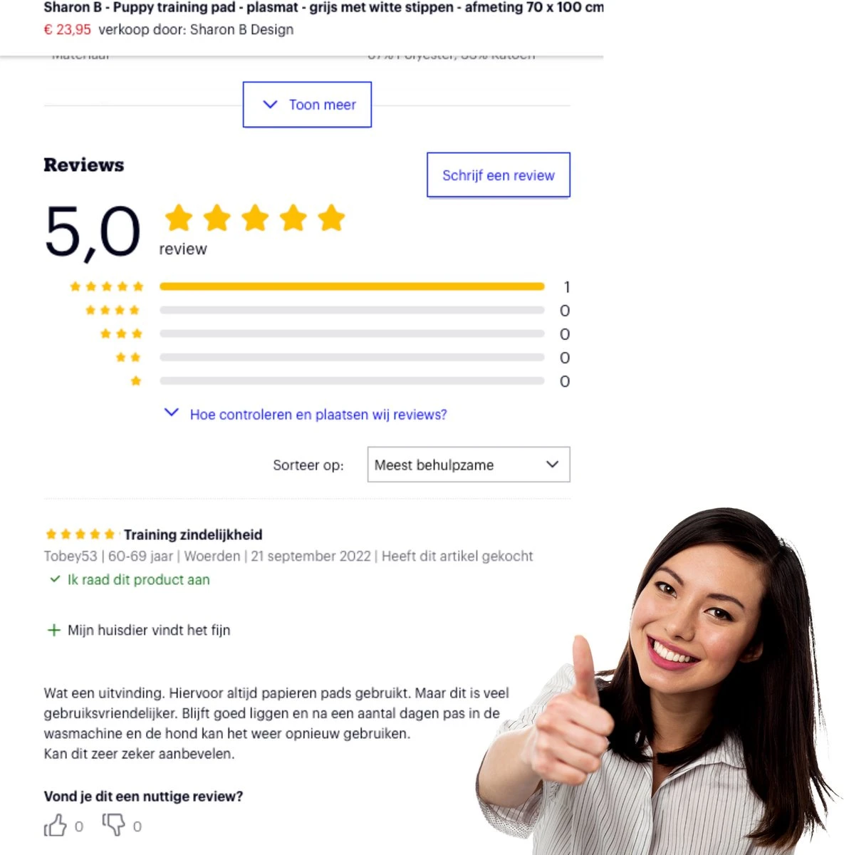 Geen zorgen, als je niet tevreden bent mag je de puppy pad altijd weer terug sturen binnen 30 dagen (zonder opgaaf van reden). Je ontvangt dan het volledige aankoopbedrag inclusief verzendkosten binnen 48 uur terug.